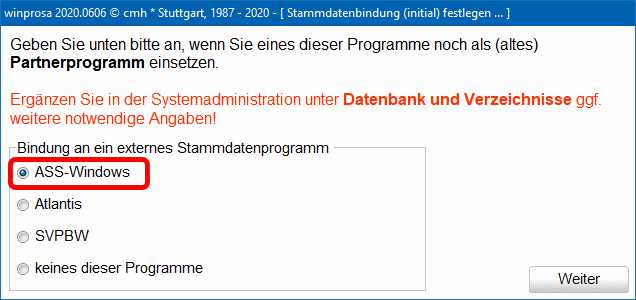 5. Wiedereinbinden von ASS nach einer Neuinstallation von winprosa