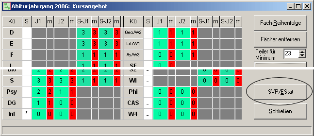 Dadurch öffnet sich das E-Stat-Fenster (siehe Bild unten) mit aktiver Karteikarte Fächer: SVP->winprosa