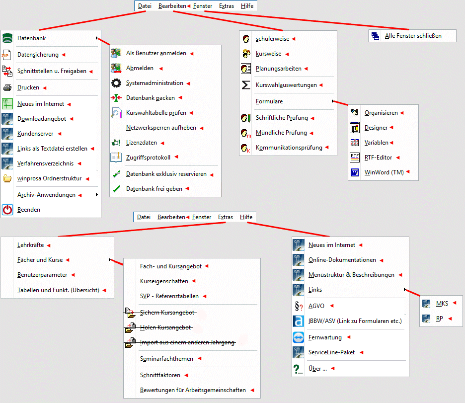 | Menüstruktur mit Links zur Dokumentation von winprosa | Stand: 12.03.23 |