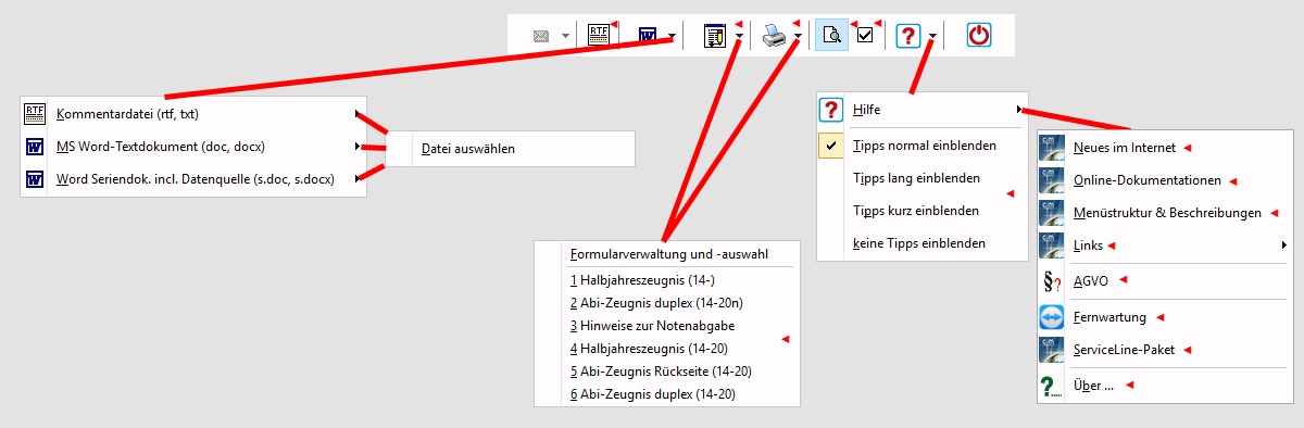 Die Grafiken sind verweis-sensitiv angelegt, d.h. alle Menü- oder Symboleinträge, für die eine Dokumentation verfügbar ist, sind durch